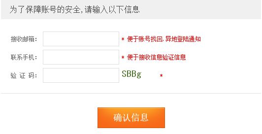 可以看到,页面上已经提示你 需要输入找回密码的接收邮箱以及联系手机号.全部填写完毕后,点击确认信息.本次的账号资料就补全了.