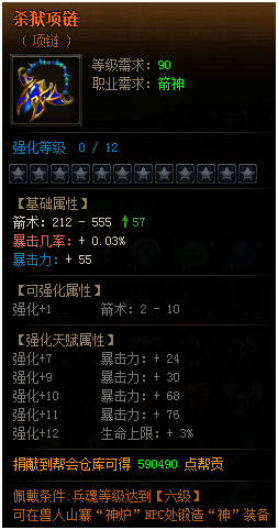获取方式:击杀神罗天界中的BOSS“神罗天神”有几率掉落装备碎片,使用碎片可在NPC“兵魂之刃”处合成
